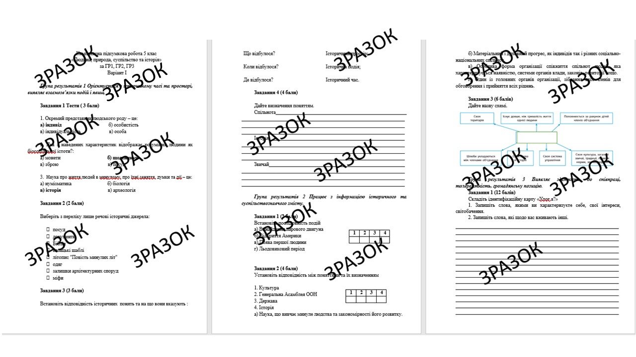 Матеріали «Комплексна підсумкова робота 5 клас Кафтан «Людина, природа, суспільство та історія» за ГР» будуть надіслані в електронному вигляді на вашу поштову скриньку одразу після оплати.