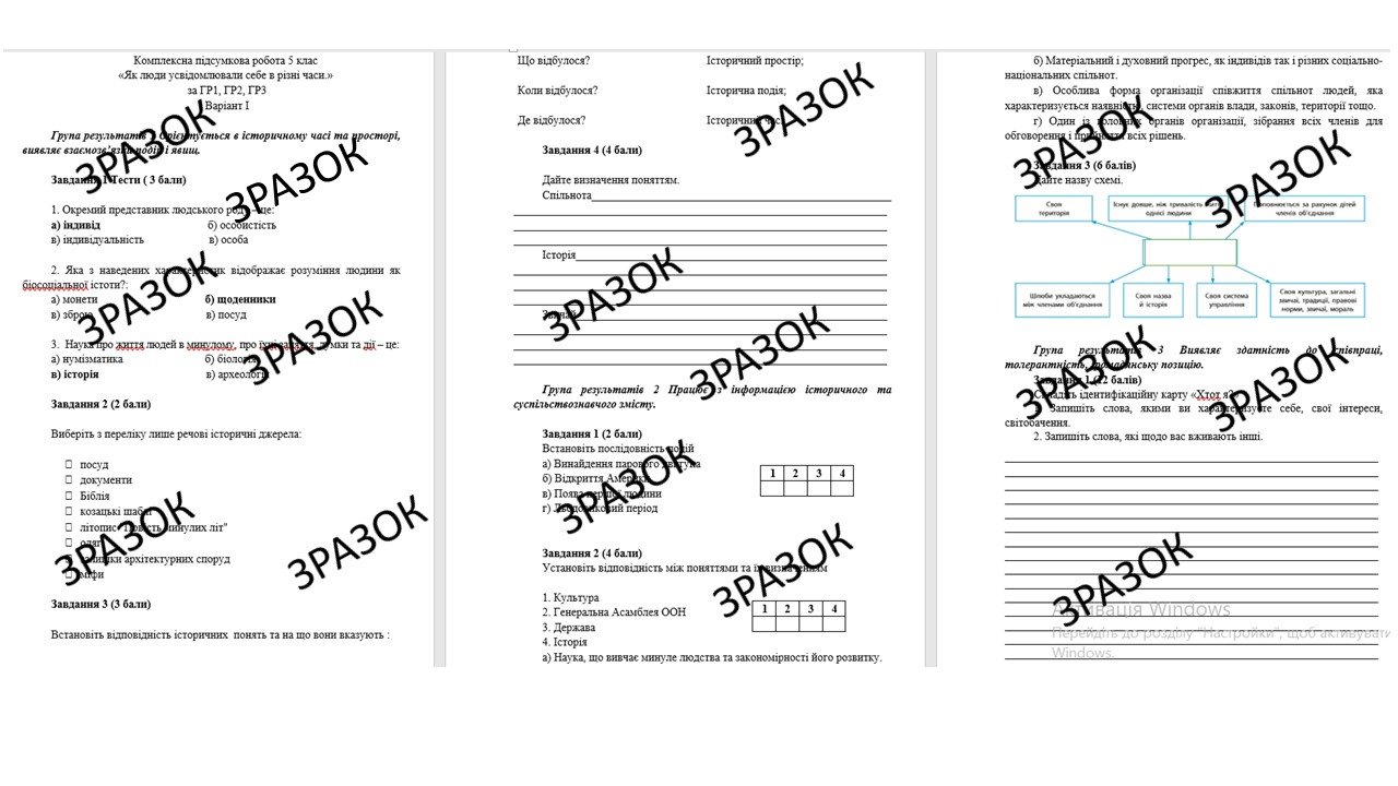 Комплексна підсумкова робота 5 клас Кафтан «Як люди усвідомлювали себе в різні часи.» за ГР1, ГР2, ГР3