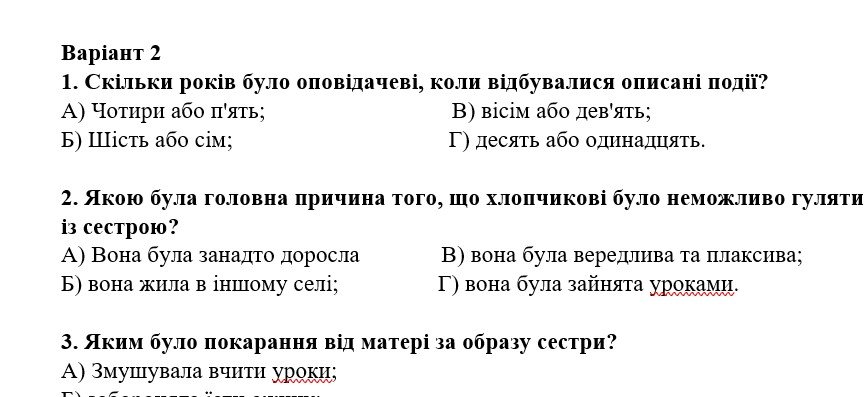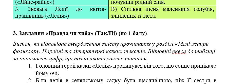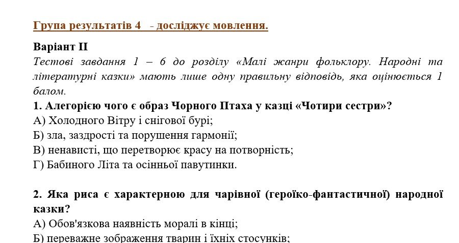 Комплексна підсумкова робота. 5 клас. Українська література “Малі жанри фольклору. Народні та літературні казки” за чотирма ГР (МНП Яценко) 2 варіанти