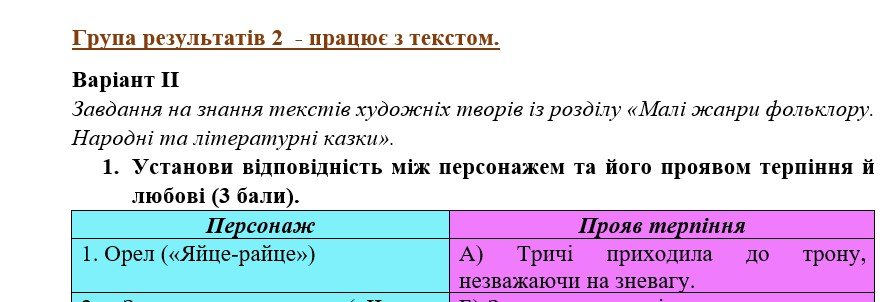 Коли я отримаю матеріал «Комплексна підсумкова робота. 5 клас. Українська література “Малі жанри фольклору. Народні та літературні казки” за чотирма ГР (МНП Яценко) 2 варіанти»?
