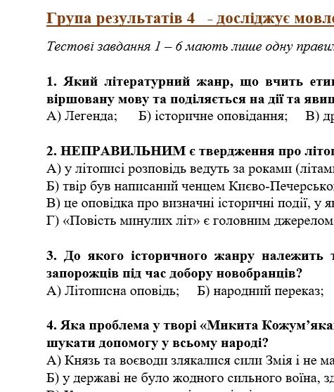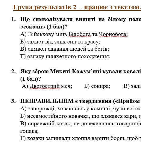 - ГР 2 – завдання за прочитаними творами: тестові завдання, завдання на відповідність, завдання правда чи хиба;
