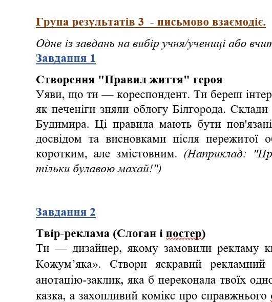 - ГР 3 – ТРИ креативних творчих завдання на вибір учня/учениці (написання різних творчих робіт на тематику прочитаних творів (з поясненням));