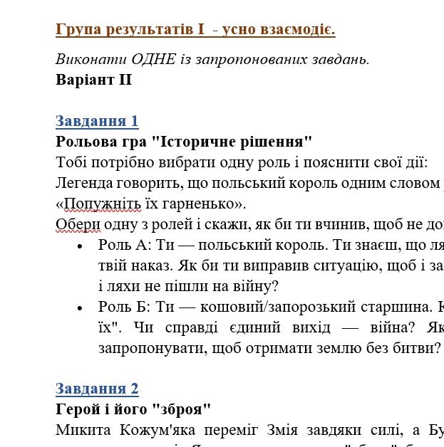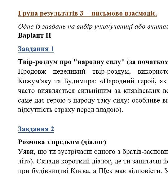 - ГР 1 – ТРИ завдання на вибір учителя/ьки або учня/ениці (завдання пов’язані з тематикою вивченого розділу та прочитаних творів) – 2 варіанти;