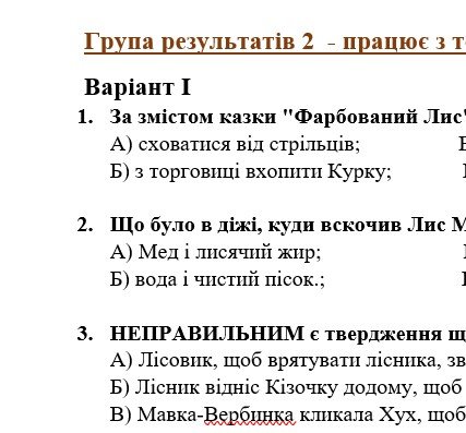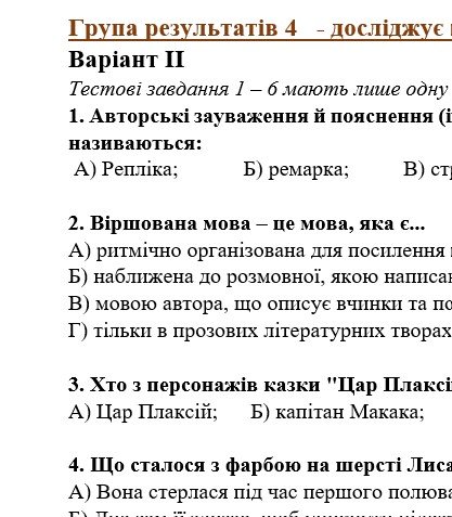 - ГР 2 – завдання за прочитаними творами: тестові завдання, завдання на відповідність, завдання правда чи хиба – 2 варіанти;