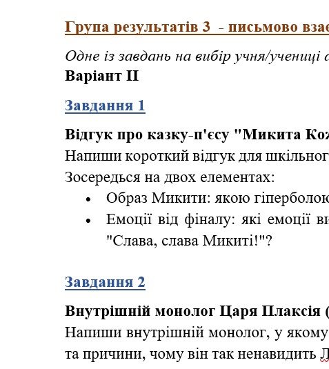 - ГР 3 – ТРИ креативних творчих завдання на вибір учня/учениці (написання різних творчих робіт на тематику прочитаних творів (з поясненням)) – 2 варіанти;