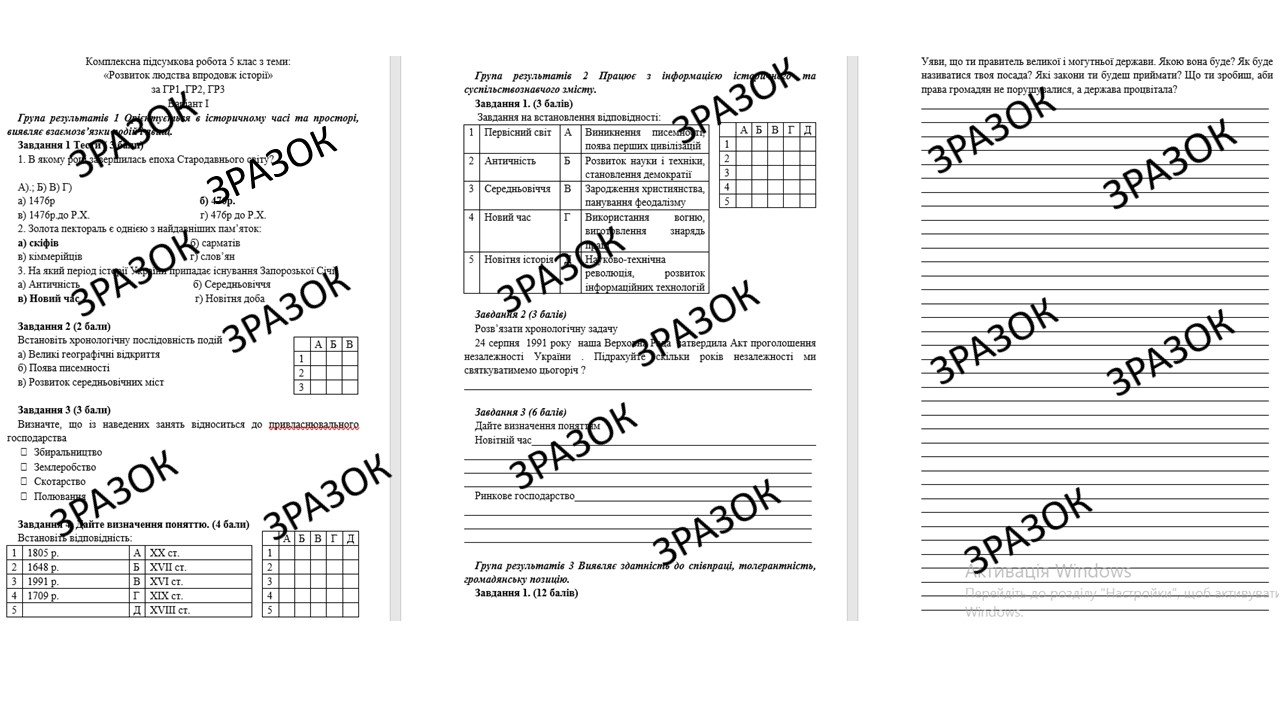 Комплексна підсумкова робота 5 клас Власов з теми: «Розвиток людства впродовж історії» за ГР1, ГР2, ГР3