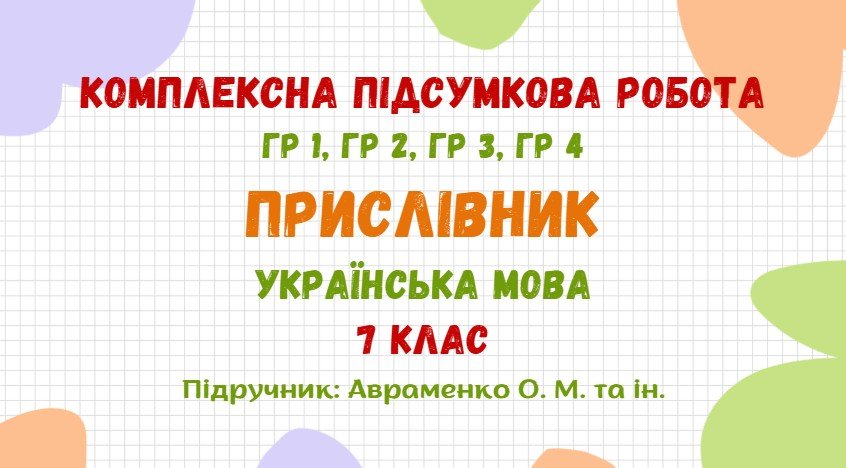 Як купити матеріал «Комплексна підсумкова робота №5. Прислівник. Українська мова 7 клас НУШ (підручник: Авраменко О. М. та ін.)»?