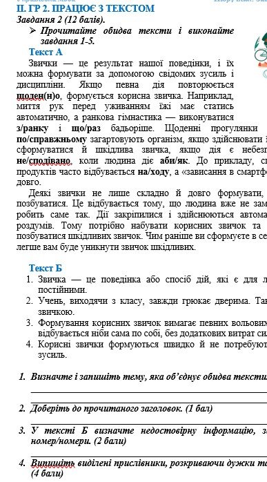 У комплекті є відповіді, критерії оцінювання, самооцінювання.