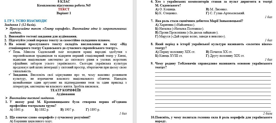 Коли я отримаю матеріал «Комплексна підсумкова робота №5. Текст. Українська мова. 8 клас НУШ (підручник: Голуб Н. Б. та ін.)»?