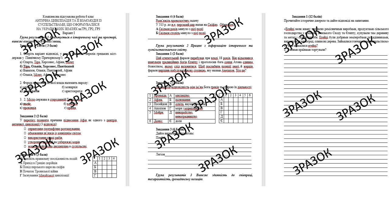 Чи можна замовити матеріал «Комплексна підсумкова робота 6 клас Гісем АНТИЧНА ЦИВІЛІЗАЦІЯ ТА ЇЇ ВЗАЄМОДІЯ ІЗ СУСПІЛЬСТВАМИ, ЩО СФОРМУВАЛИСЯ НА УКРАЇНСЬКИХ ЗЕМЛЯХ за ГР» по телефону, або месенжеру?