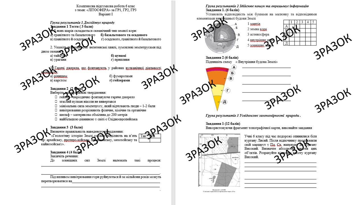 Комплексна підсумкова робота 6 клас Кобернік з теми: «ЛІТОСФЕРА» за ГР1, ГР2, ГР3
