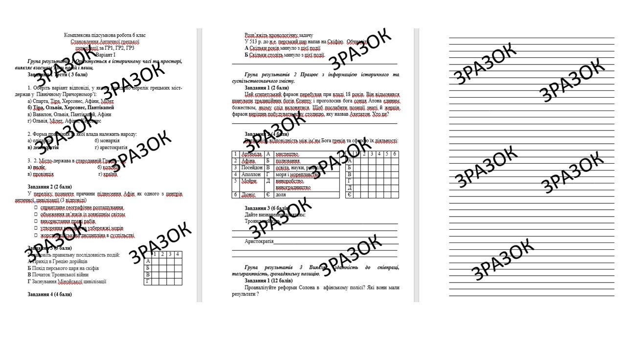 Комплексна підсумкова робота 6 клас Пометун Становлення Античної грецької цивілізації за ГР1, ГР2, ГР3