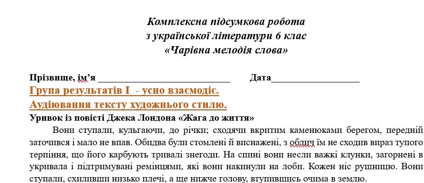 6 клас. Українська література. Комплексна підсумкова робота “Чарівна мелодія слова” (...