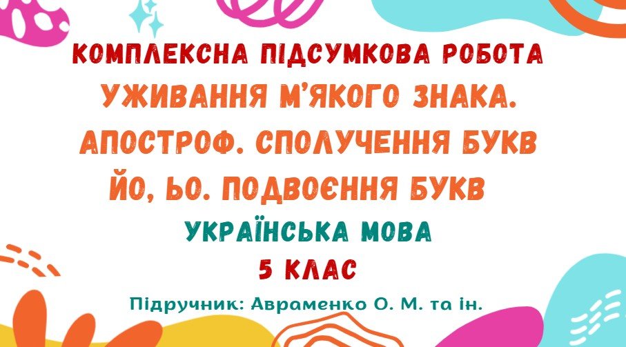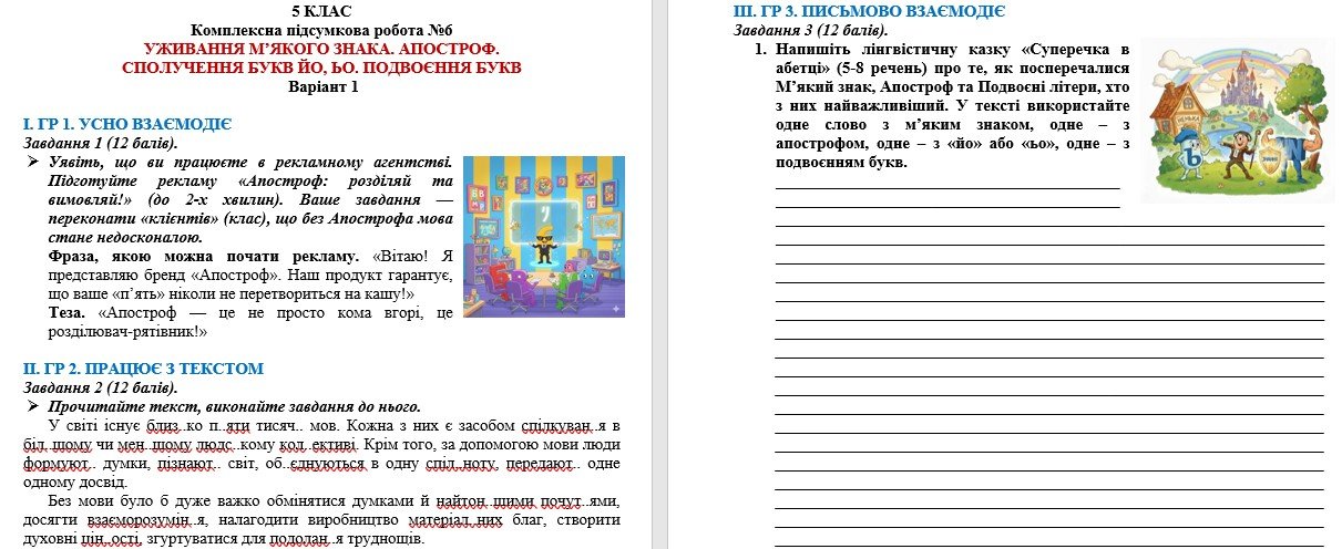Як купити матеріал «Комплексна підсумкова робота №6. Уживання м’якого знака. Апостроф. Сполучення букв йо, ьо. Подвоєння букв. 5 клас НУШ (підручник: Авраменко О. М.)»?