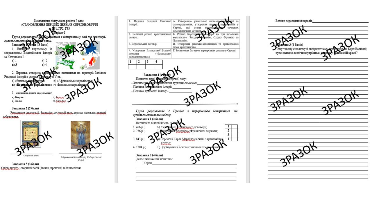 Комплексна підсумкова робота 7 клас Історія всесвітня Васильків «СТАНОВЛЕННЯ ПЕРШИХ ДЕРЖАВ СЕРЕДН...