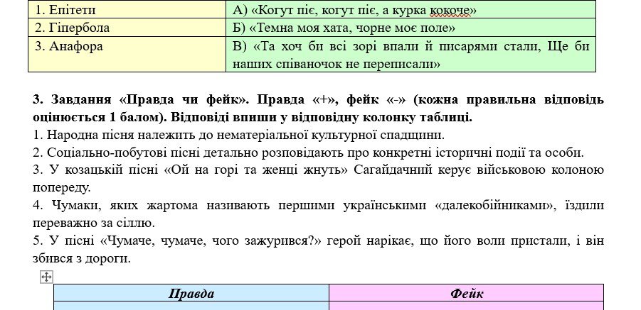 7 клас. Українська література. Комплексна підсумкова робота “Народна творчість” ( під...