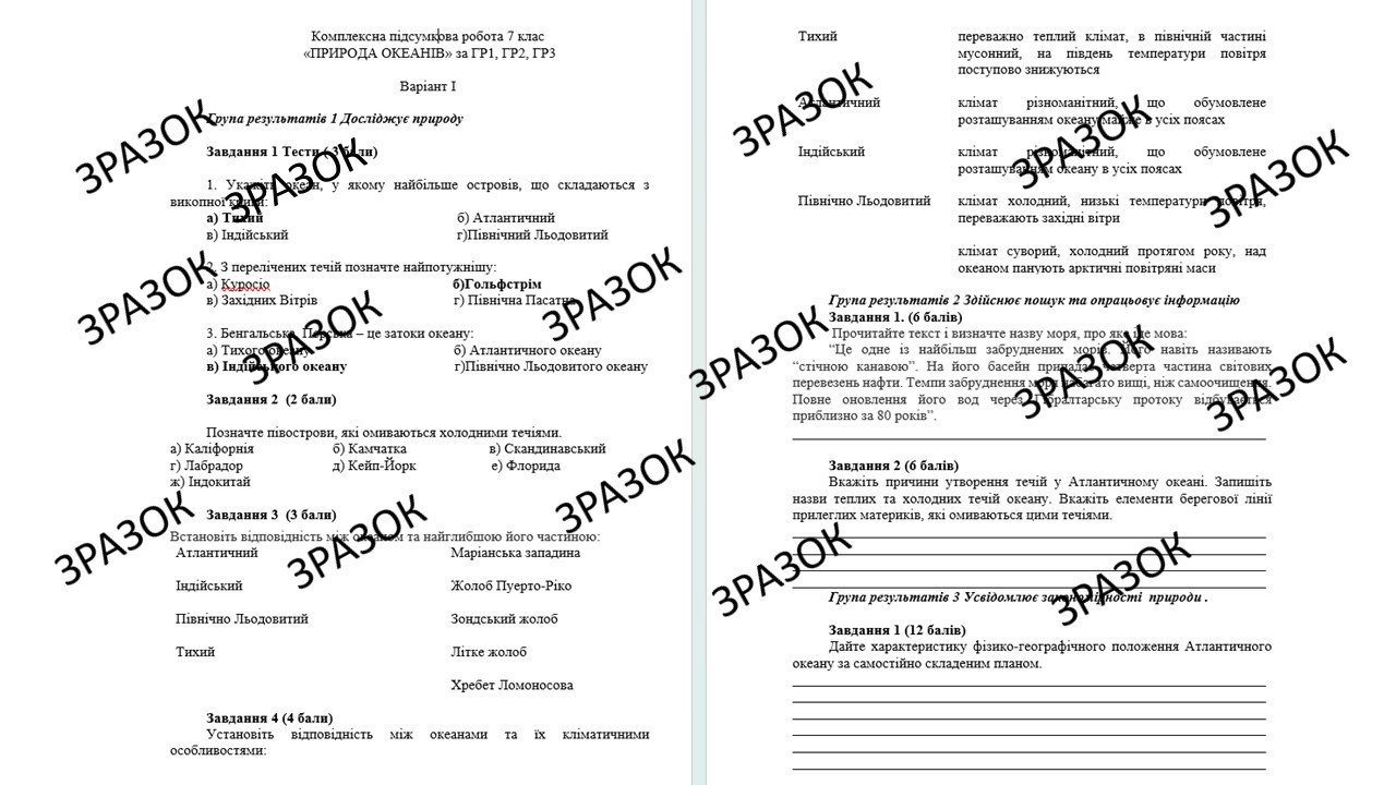 Комплексна підсумкова робота 7 клас Запотоцький з теми: «Природа океанів» за ГР