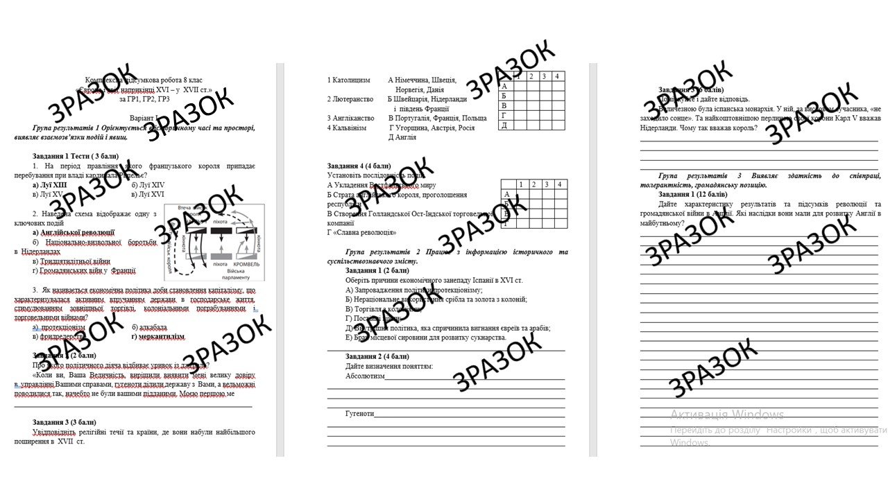 Комплексна підсумкова робота 8 клас Гісем “Європа і світ наприкінці ХVІ – у ХVІІ ст.” за ГР1, ГР2, ГР3