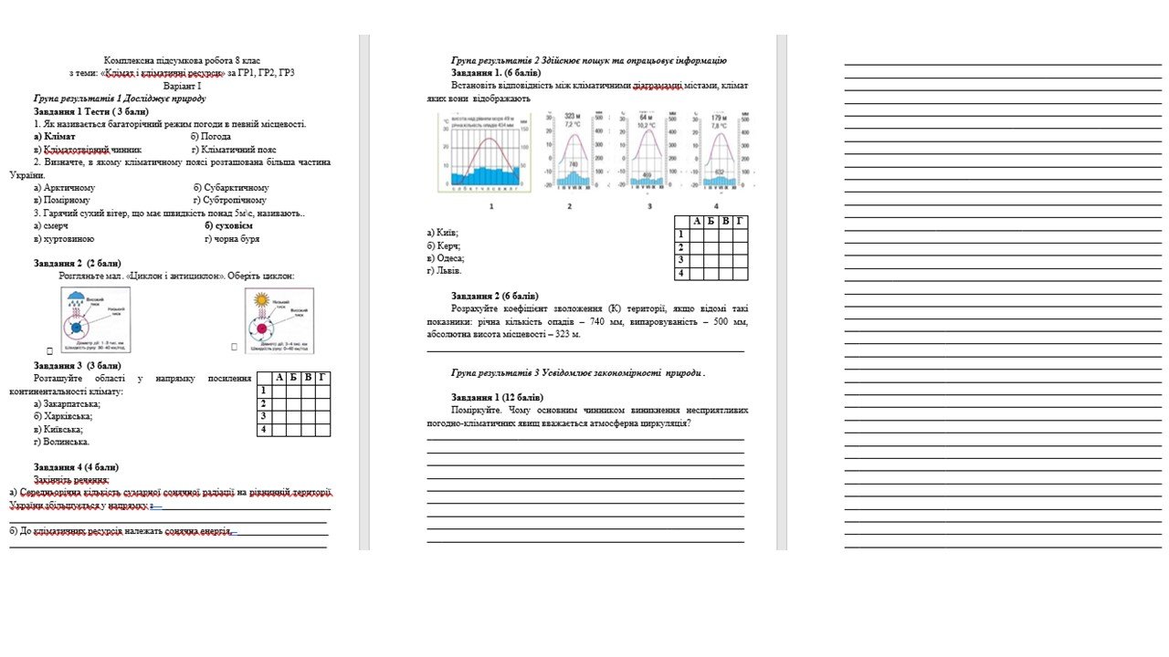 Комплексна підсумкова робота 8 клас Запотоцький з теми: «Клімат і кліматичні ресурси» за ГР1, ГР2, ГР3
