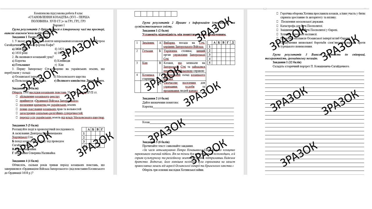 Комплексна підсумкова робота 8 клас Щупак «СТАНОВЛЕННЯ КОЗАЦТВА (XVI – ПЕРША ПОЛОВИНА XVIІ СТ.)» ...