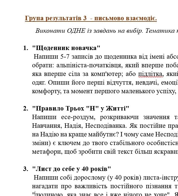 - ГР 3 – ТРИ завдання на вибір учня/учениці (написання креативних творчих робіт на запропоновану тематику) 2 варіанти;