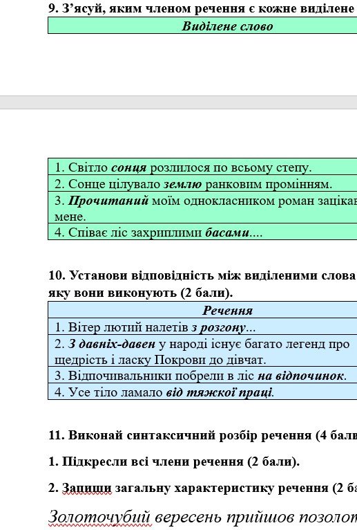 - ГР 4 – тестові завдання, завдання на відповідності, синтаксичний розбір речення – 2 варіанти.