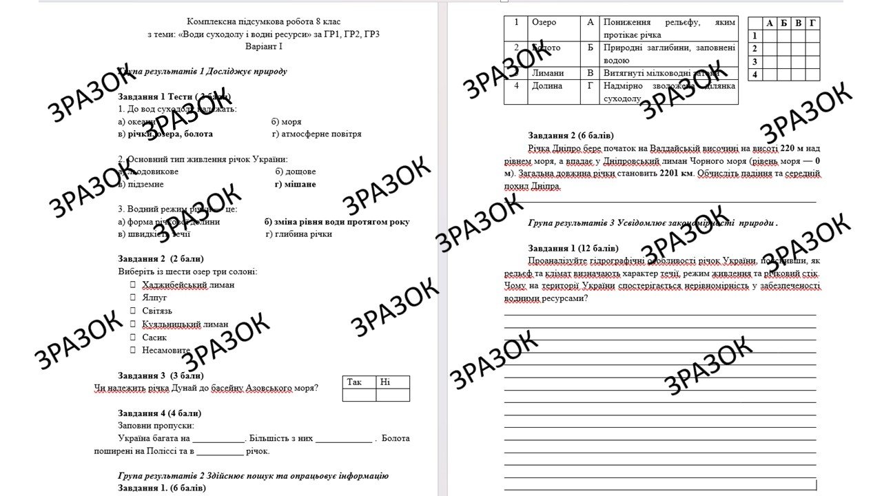 Комплексна підсумкова робота 8 клас Запотоцький з теми: «Води суходолу і водні ресурси» за ГР1, ГР2, ГР3