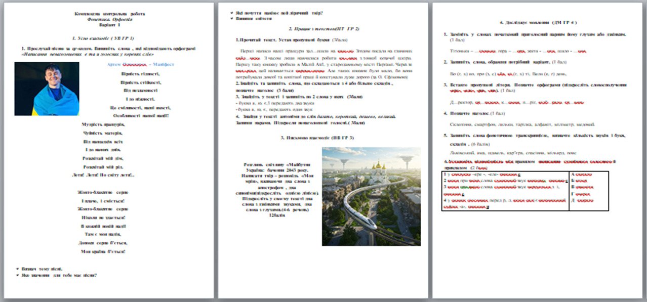 Комплексна підсумкова робота. 5 клас. Українська мова. “Фонетика” ІІ частина за чотир...