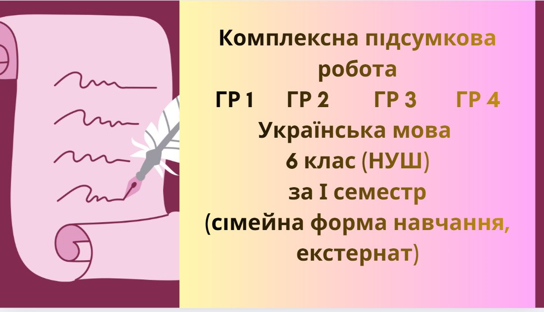 Комплексна підсумкова робота ГР 1 ГР 2 ГР 3 ГР 4 Українська мова 6 клас (НУШ) за І семестр (сімейна форма навчання, екстернат)