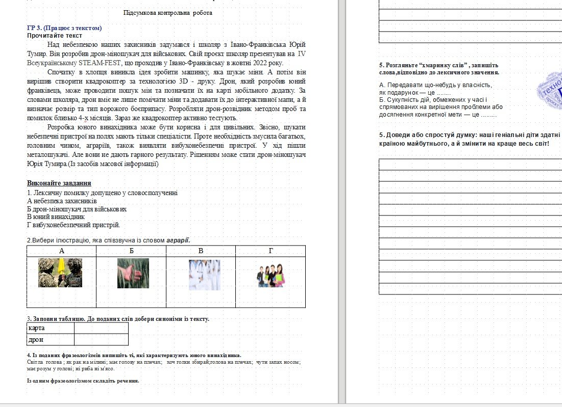 - ГР 2 (Аналіз тексту :тестові завдання + творче завдання)
