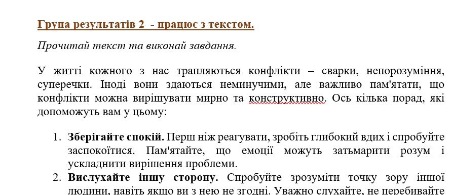 ПТ – робота з текстом про конфлікти та способи їх розв’язання (тема, стиль, тип, завдання, пов’язані з темою «Числівник»).