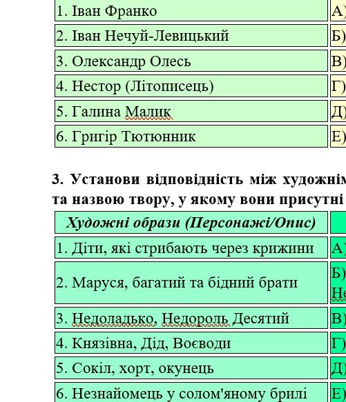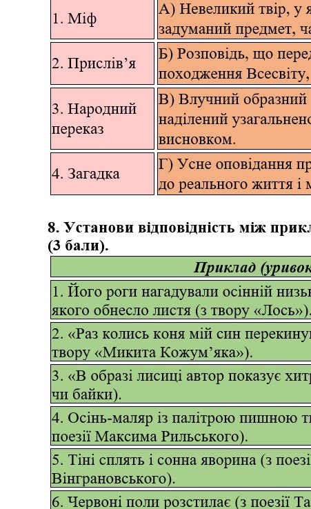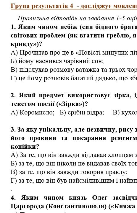 - ГР 4 – тестові завдання, завдання на встановлення відповідностей з теорії літератури та за прочитаними творами.