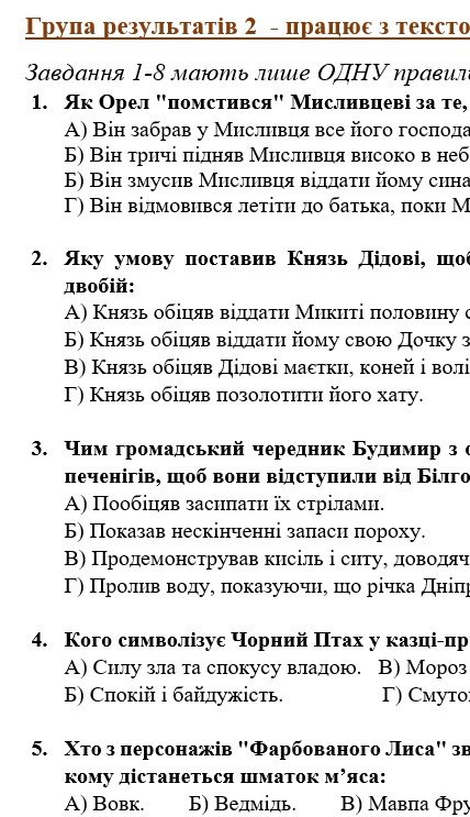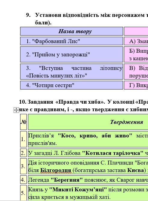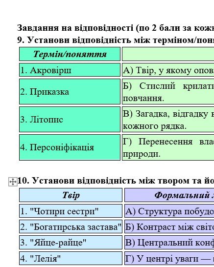 ГР 4 – тестові завдання, завдання на встановлення відповідностей з теорії літератури та за прочитаними творами.