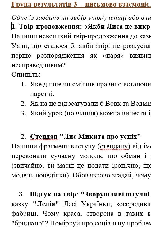 ГР 3 – ТРИ завдання для письмової взаємодії на вибір (написання креативних творчих робіт );