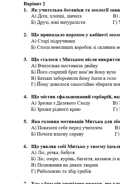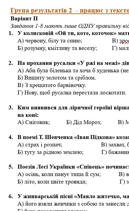 - ГР 2 – тестові завдання, завдання на встановлення відповідностей, завдання “Правда чи хиба” за прочитаними творами – 2 варіанти;