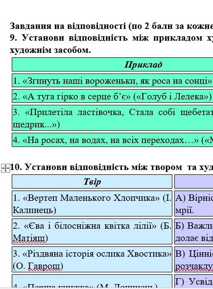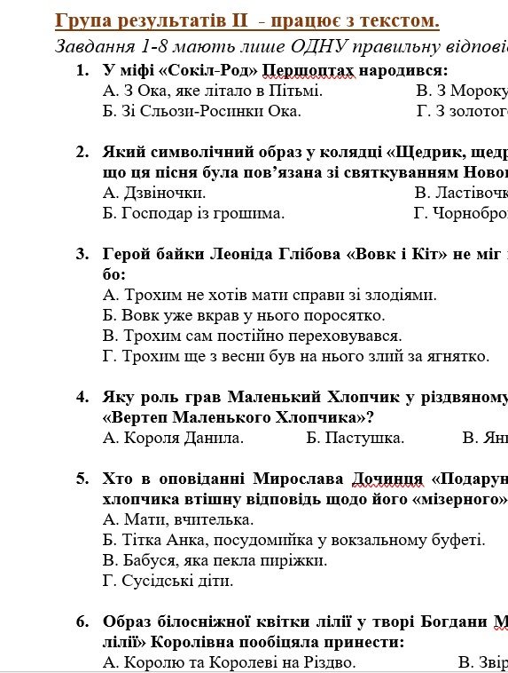 ГР 4 – тестові завдання, завдання на встановлення відповідностей з теорії літератури та за прочитаними творами.