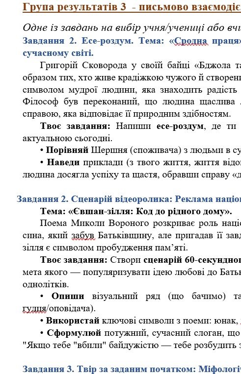 ГР 3 – ТРИ завдання для письмової взаємодії на вибір (написання креативних творчих робіт );