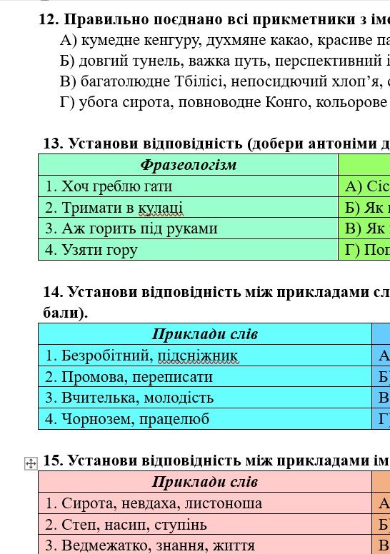 - ГР 4 – тестові завдання, завдання на встановлення відповідностей.