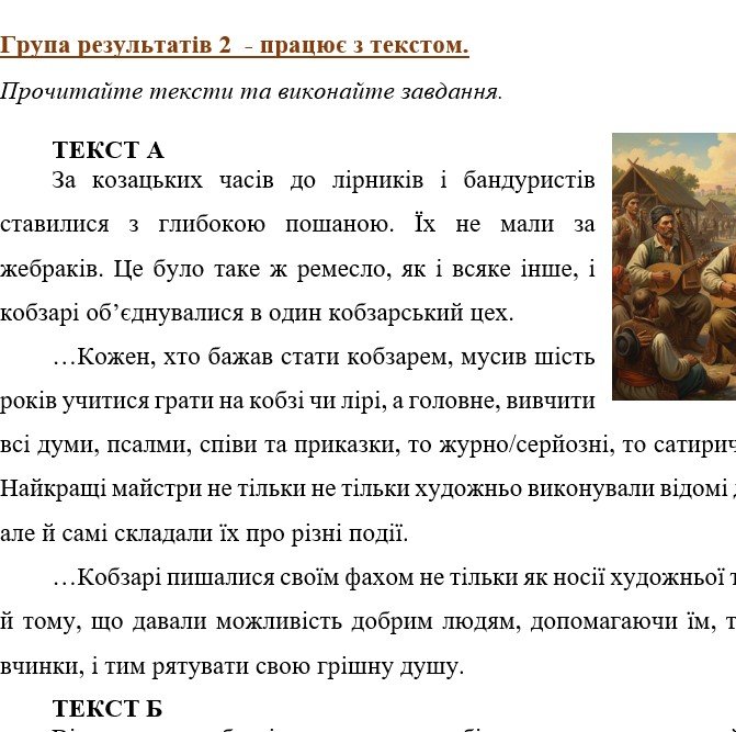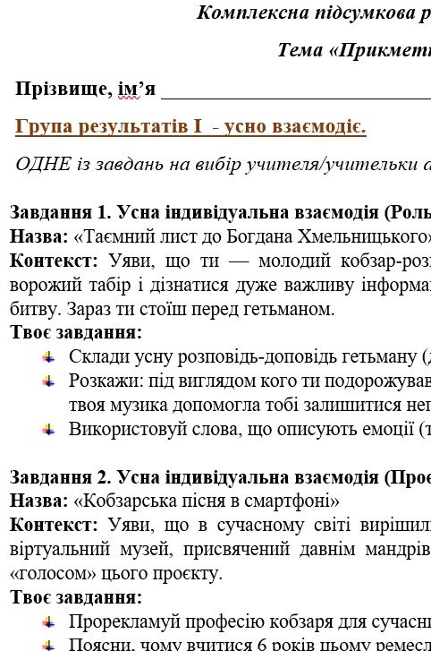 ГР 1 – три ситуативні завдання на вибір учителя/учительки або учня/учениці (рольова гра, проєкт-дослідження, парна робота – діалог).