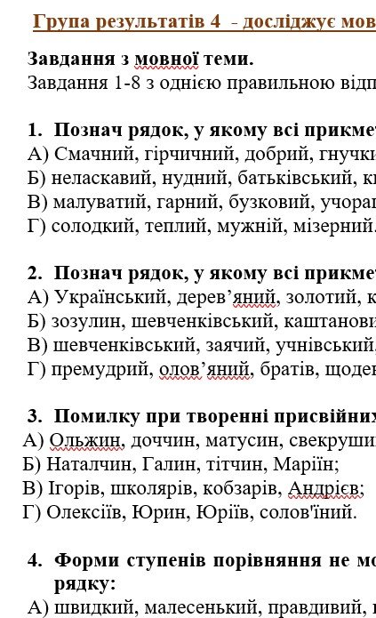 ГР 4 – тестові завдання, завдання на встановлення відповідностей, робота зі словом (морфологічний розбір).