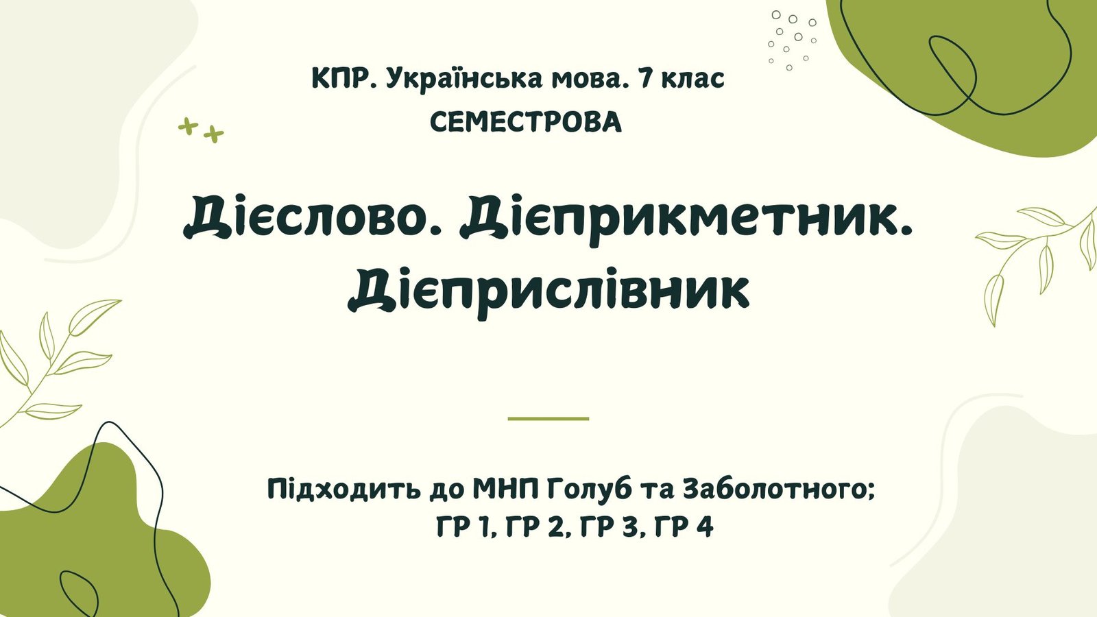 КПР. 7 клас. Українська мова. За І СЕМЕСТР за ЧОТИРМА групами результатів. Підходить до модельних навчальних програм Голуб та Заболотного. ПЕРЕВІРЕНО!!!!!