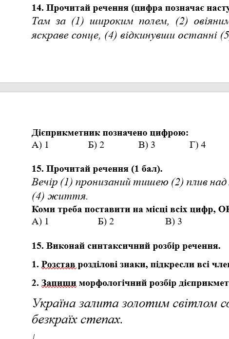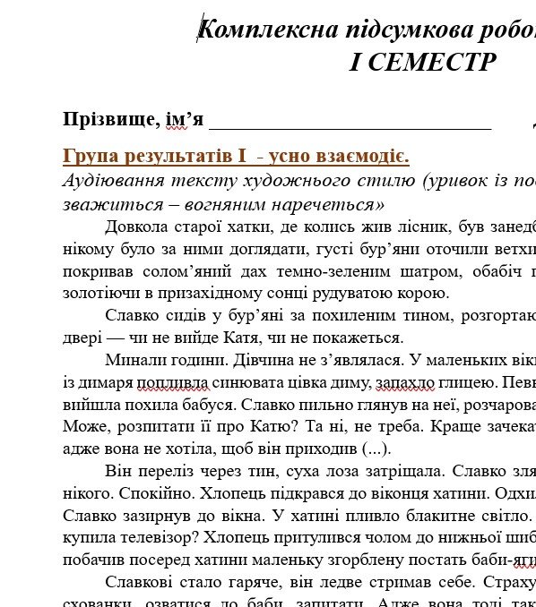 - ГР 1 – аудіювання тексту художнього стилю АБО три завдання на вибір учителя/ьки або учня/ениці для усної індивідуальної взаємодії;