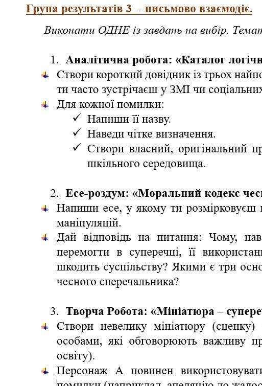 - ГР 3 – три завдання на вибір учителя/ьки або учня/ениці (написання цікавих та креативних творчих робіт);