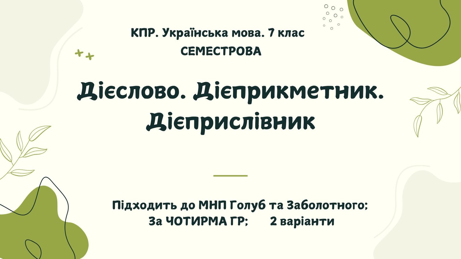 Комплексна підсумкова робота. Українська мова. 7 клас. За І семестр. За ЧОТИРМА ГР !!!. Підходить до МНП Голуб та Заболотного. 2 варіанти ПЕРЕВІРЕНО!