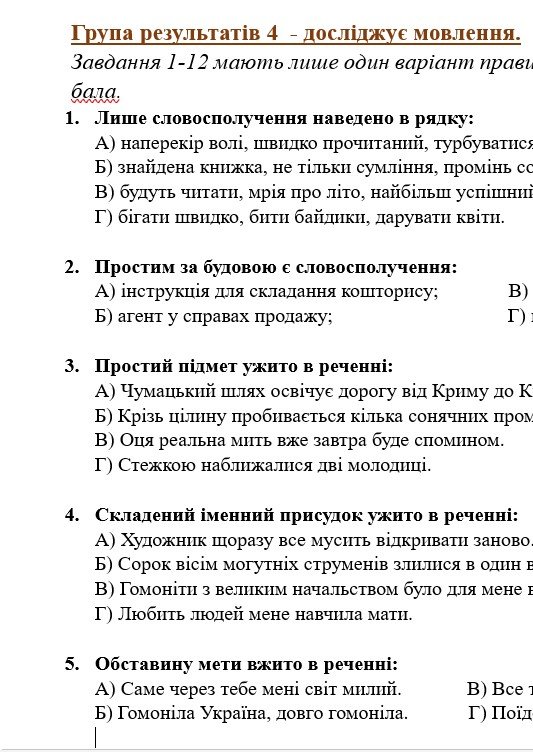 - ГР 4 – тестові завдання, завдання на встановлення відповідностей – 2 варіанти.