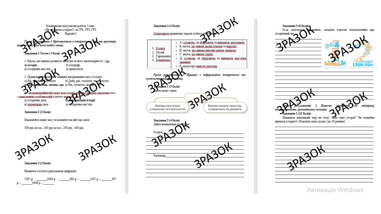 Комплексна підсумкова робота з історії 5 клас Пометун з теми: «ІСТОРИЧНИЙ ЧАС І ПРОСТІР» за ГР