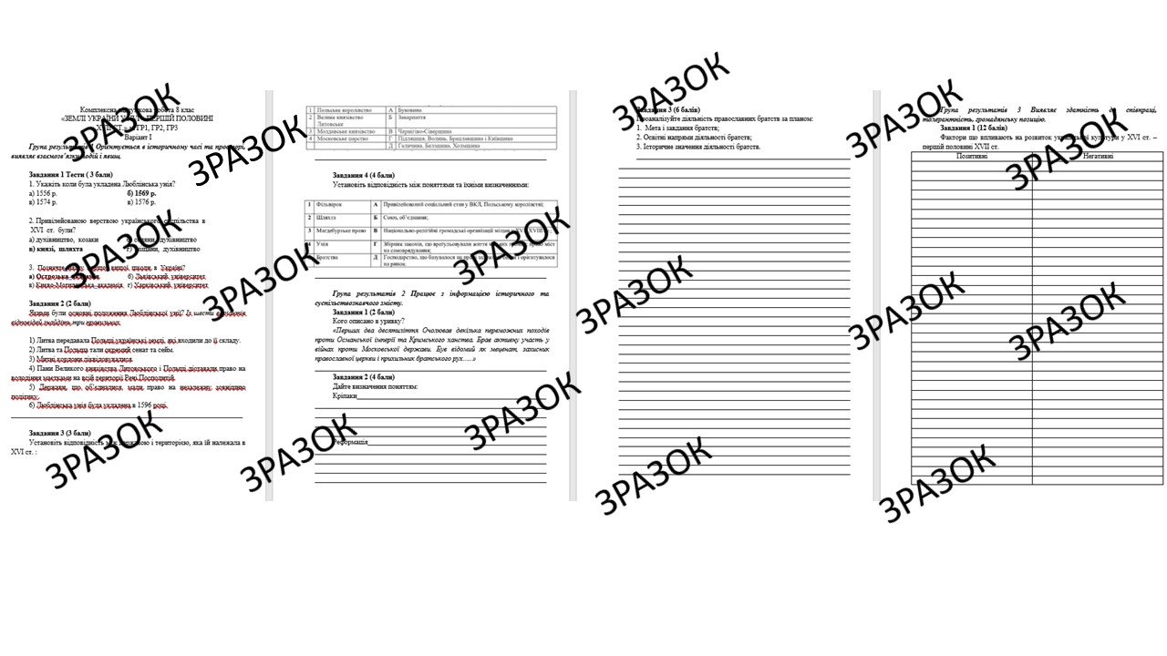 Комплексна підсумкова робота з історії України 8 клас Пометун з теми: «УКРАЇНСЬКІ ЗЕМЛІ У СКЛАДІ РЕЧІ ПОСПОЛИТОЇ У XVI – ПЕРШІЙ ПОЛОВИНІ XVIІ» за ГР