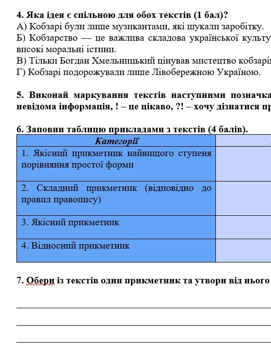 ГР 2 – робота над двома короткими текстами (тестові завдання для перевірки розуміння текстів, завдання, пов’язані з темою «Прикметник») – 2 варіанти.
