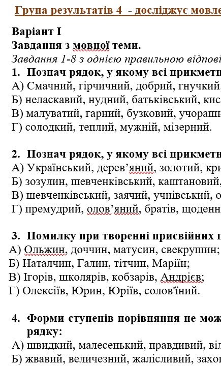 ГР 4 – тестові завдання, завдання на встановлення відповідностей, робота зі словом (морфологічний розбір) – 2 варіанти.