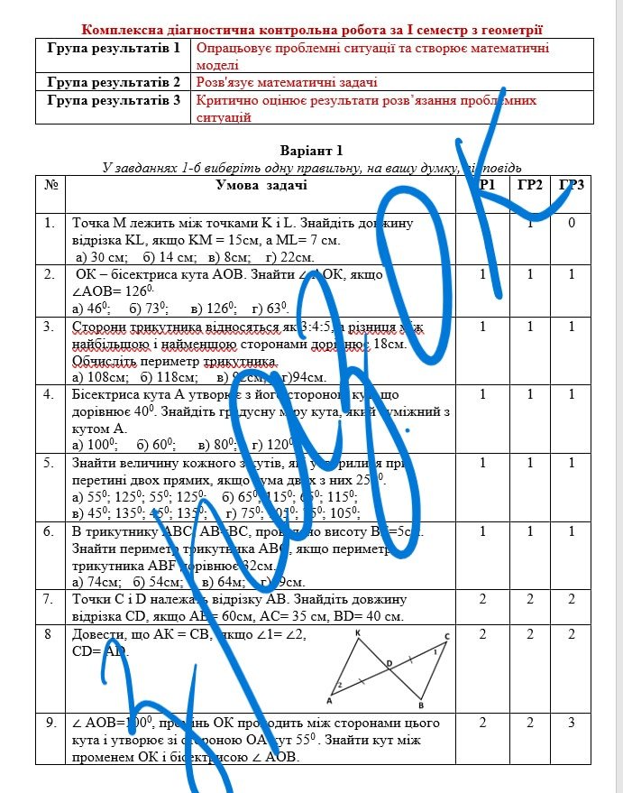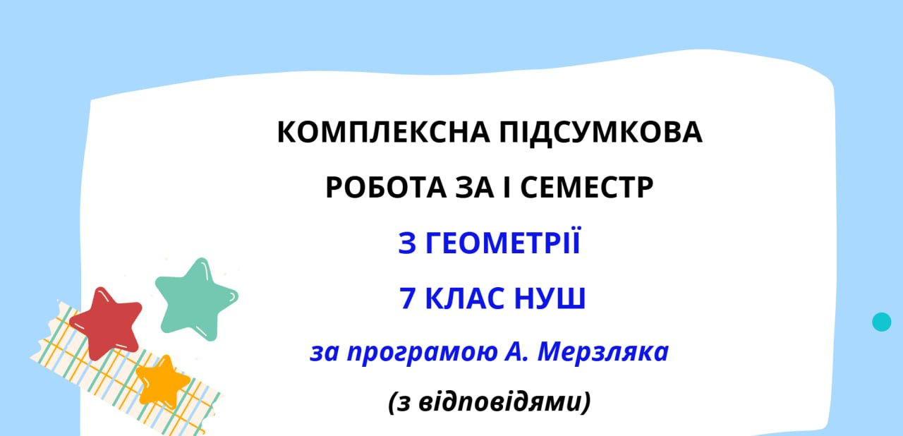 Комплексна підсумкова робота за І семестр з геометрії 7 клас НУШ з відповідями за програмою О.Іст...